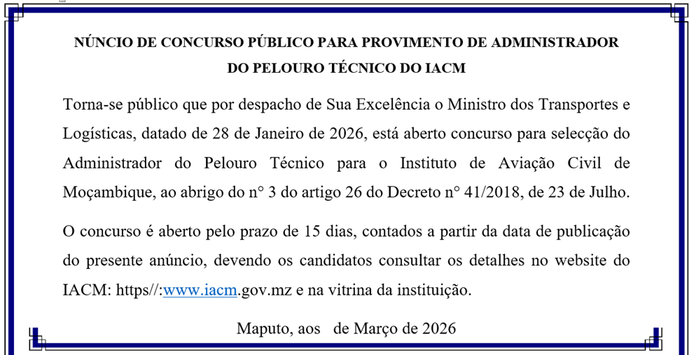 IACM prepara plano de aviação para atacar oportunidades do Projecto de conectividade na SADC